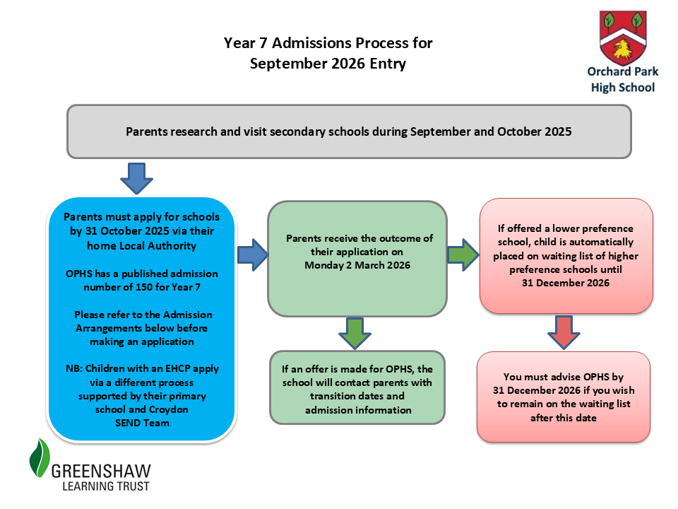 Applications to Year 7 at Orchard Park High School are co-ordinated by the London Borough of Croydon.